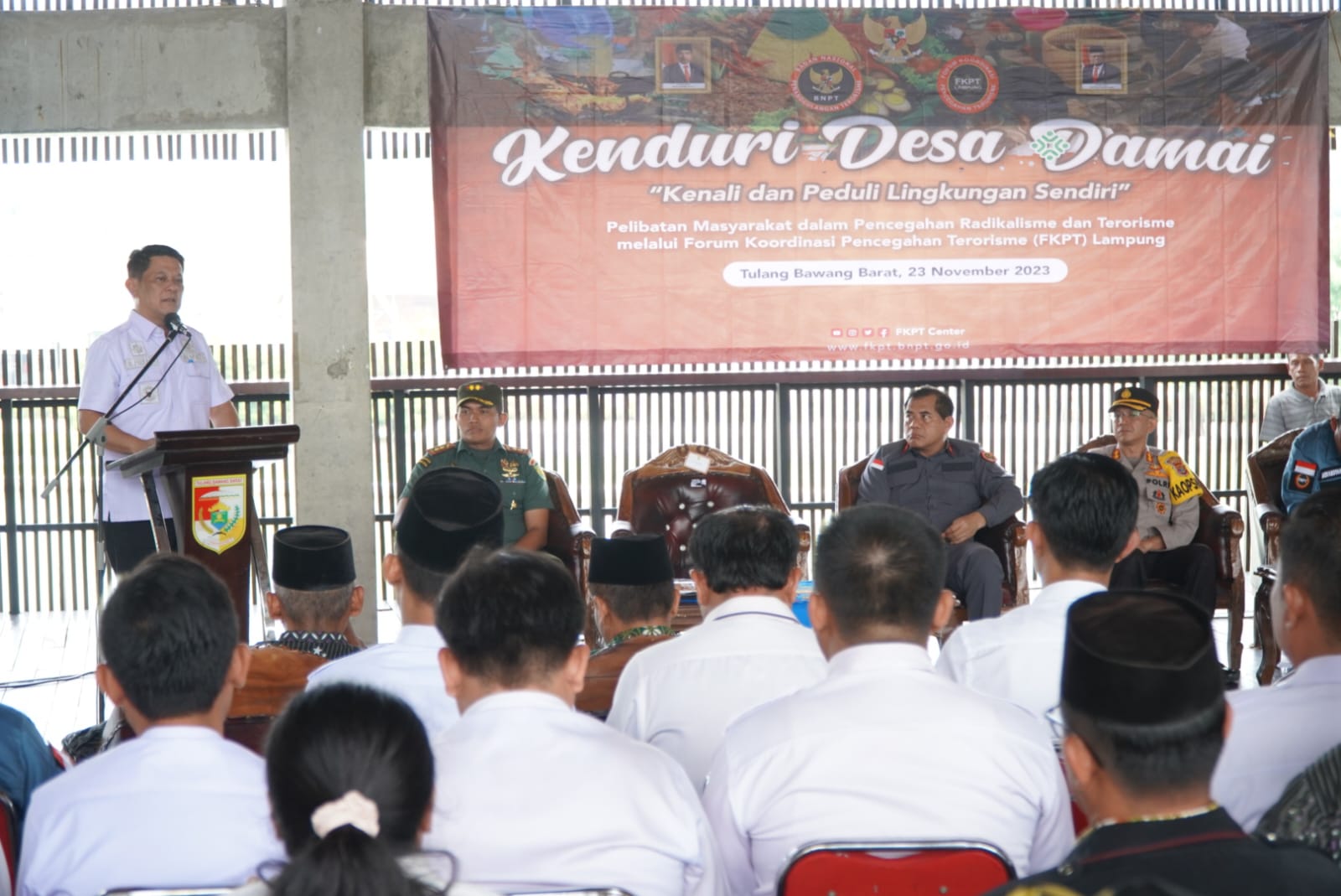 Pj Bupati Tubaba mengatakan dalam Kegiatan Kenali dan Peduli Lingkungan Sendiri (KENDURI) yang kita gelar hari ini memiliki tujuan yang sangat mulia, yaitu untuk mendorong kesadaran masyarakat dalam menjaga lingkungan dan juga sebagai upaya dalam pencegahan radikalisme dan terorisme.