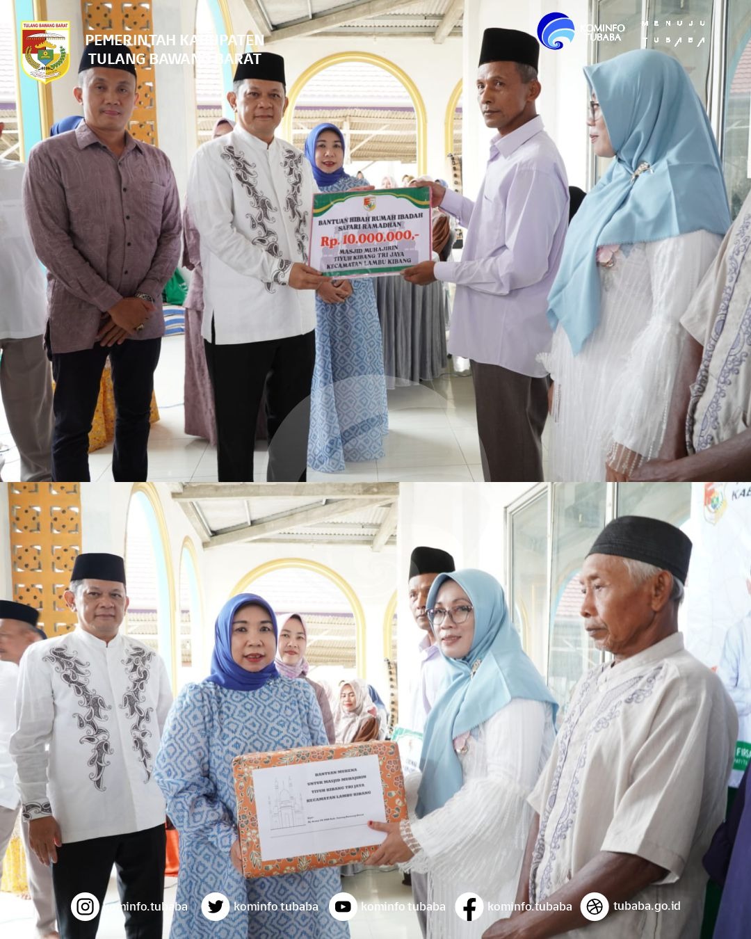 Diketahui dalam kegiatan tersebut, Penjabat Bupati Di dampingi Ketua TP PKK Tulang Bawang Barat memberikan bantuan sejumlah sembako dari Baznas dan perlengkapan Ibadah dari TP PKK Tubaba.(Adv)