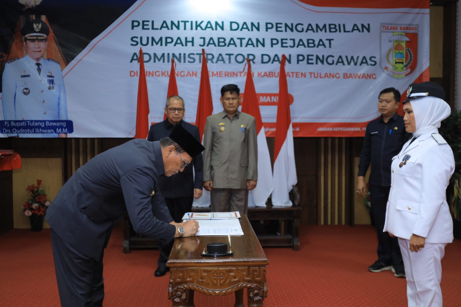 SULUHNEWS.ID, TULANG BAWANG – Pj Bupati Tulang Bawang Drs.Qudrotul Ikhwan.,MM melantik sebanyak 53 Pejabat Pemimpin Tinggi Pratama di Lingkup Pemkab Tulang Bawang. Kegiatan tersebut di gelar di Ruang Rapat Utama Lantai II Kantor Bupati. Selasa,(28/5/24).