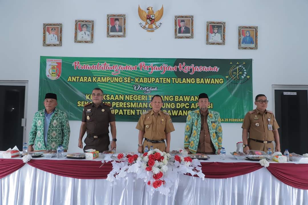 Hadir dalam acara tersebut, Kajari Tulang Bawang, Dandim Tulang Bawang, Kapolres Tulang Bawang, Kadis Kominfo, Kepala BPKAD, Perikanan, Inspektur, dan seluruh OPD, Ketua APDESI Provinsi Lampung, Ketua APDESI Tulang Bawang, Kepala Kampung Se-kabupaten Tulang Bawang.