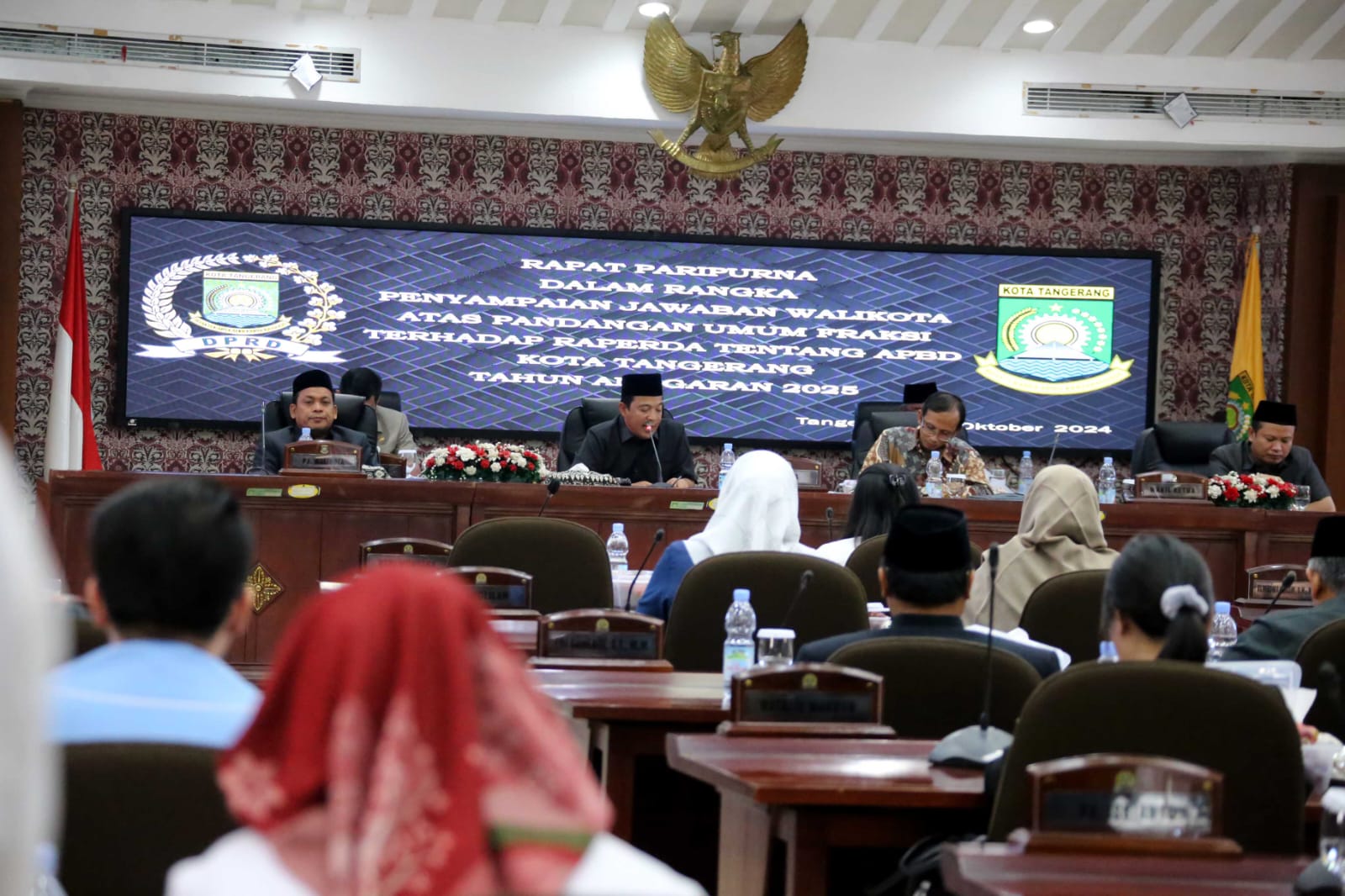 SULUHNEWS.ID, KOTA TANGERANG – Penjabat (Pj) Wali Kota Tangerang, Dr. Nurdin, menghadiri Rapat Paripurna DPRD Kota Tangerang dalam rangka penyampaian jawaban Wali Kota Tangerang atas pandangan umum fraksi-fraksi terkait Rancangan Peraturan Daerah (Raperda) tentang Anggaran Pendapatan dan Belanja Daerah (APBD) Kota Tangerang Tahun Anggaran 2025, yang berlangsung di Ruang Rapat Paripurna DPRD Kota Tangerang, Jum’at (11/10/24).