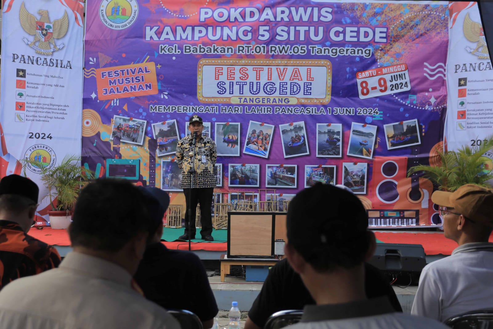 SULUHNEWS.ID, KOTA TANGERANG – Penjabat (Pj) Wali Kota Tangerang, Doktor (Dr) Nurdin, hadir dalam kegiatan Festival Musisi Jalanan yang diinisiasi oleh Kelompok Sadar Wisata (POKDARWIS) Kampung Lima Situ Gede, yang digelar di Wisata Situ Gede, Kelurahan Babakan Kecamatan Tangerang, Kota Tangerang, Sabtu (8/6/24).
