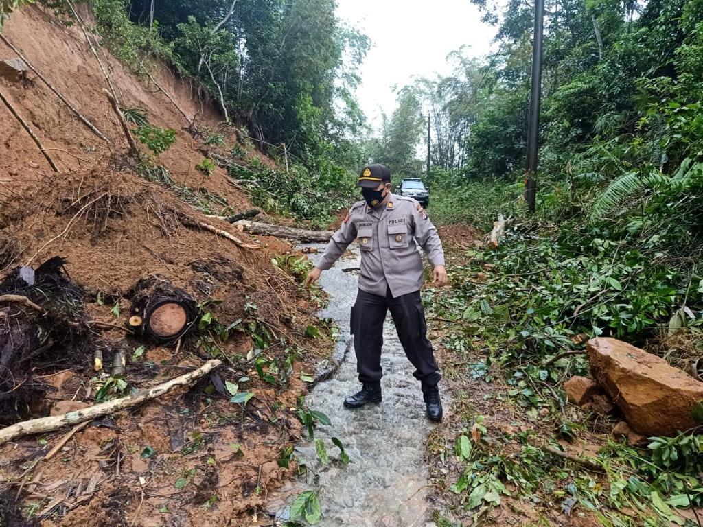 Terkait longsor dan pohon tumbang tersebut, personel Ditlantas Polda Banten melaksanakan evakuasi agar tidak terjadinya kemacetan.