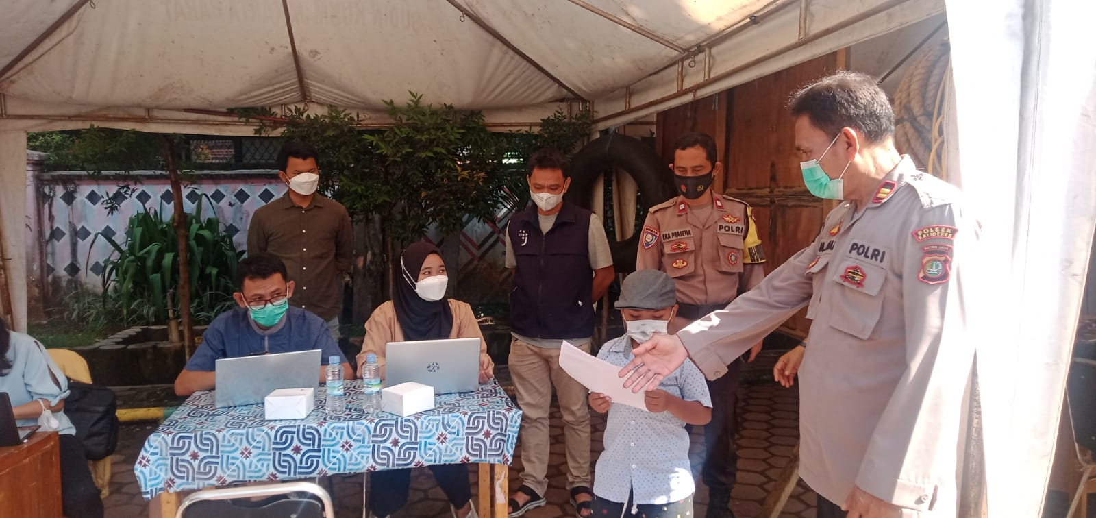 SULUHNEWS.ID, JAKARTA.- Percepatan Vaksinasi usia 6-11 tahun yang dilaksanakan polres Metro Jakarta Barat Polsek kalideres dihalaman kantor Kelurahan Semanan RT.06/07, Kecamatan Kalideres, Sabtu (8/1/22).