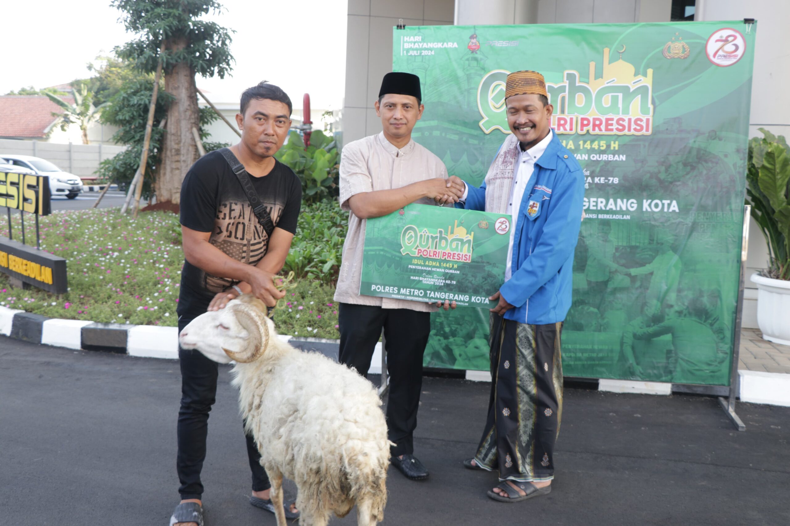 Puluhan ekor hewan kurban itu berasal dari Kapolres, seluruh satuan fungsi (satfung) Polres, para Kapolsek jajaran, Forkopimda Kota/kabupaten di wilayah hukum Polres Metro Tangerang Kota dan para pengusaha yang menyalurkan hewan Kurban melalui Polres Metro Tangerang.