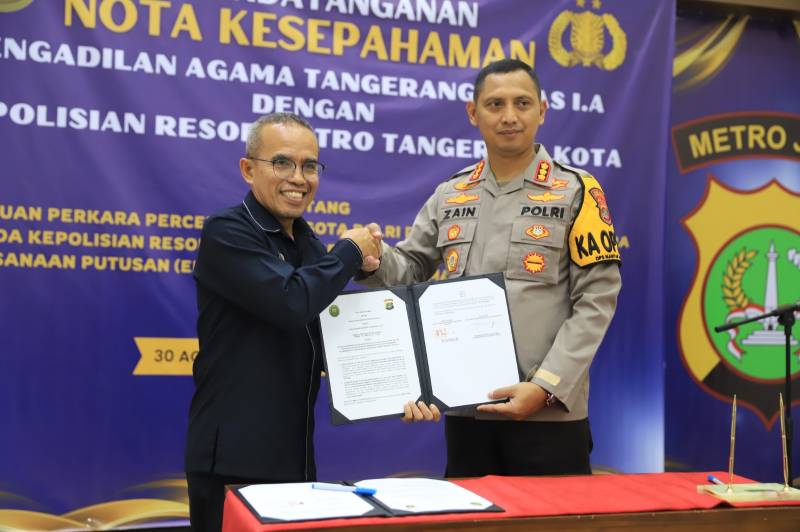 Penandatanganan MoU tersebut merupakan salah satu bentuk kelanjutan sinergi antara Pengadilan Agama Tangerang Kelas 1.A dengan Polres Metro Tangerang Kota.