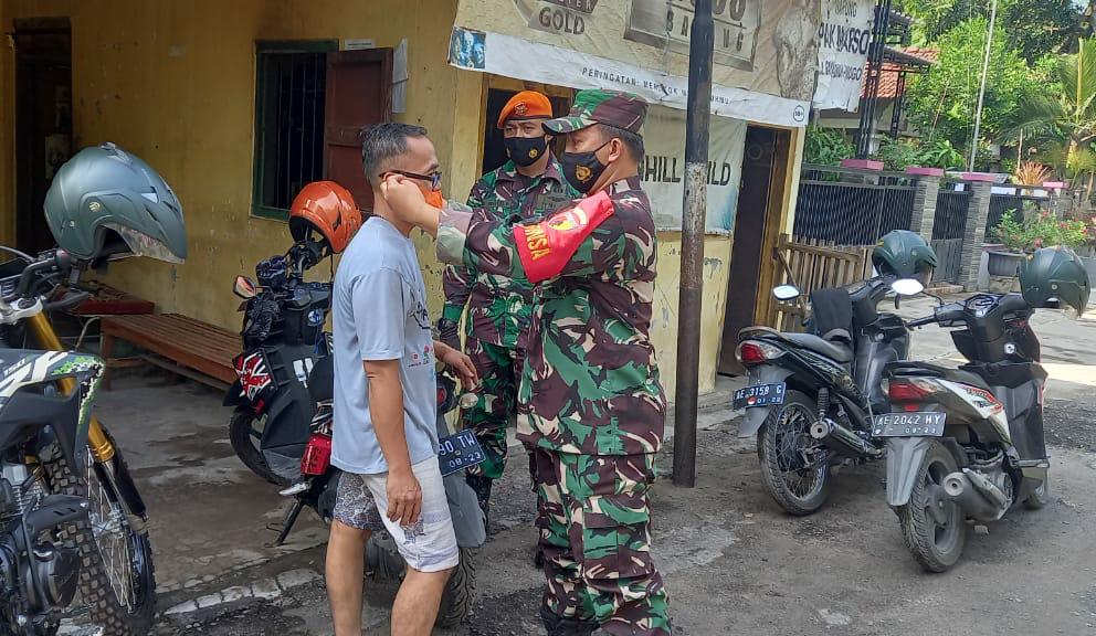 SULUHNEWS.ID, MADIUN — Dalam upaya memutus penyebaran virus Covid-19, Koramil 0803/11 Geger bersama anggota BKO dari Bataliyon Paskhas 463 melaksanakan operasi yustisi penerapan PPKM dan membagikan masker gratis kepada masyarakat, di Desa Purworejo, Kec. Geger, Kab. Madiun, Rabu (30/6).