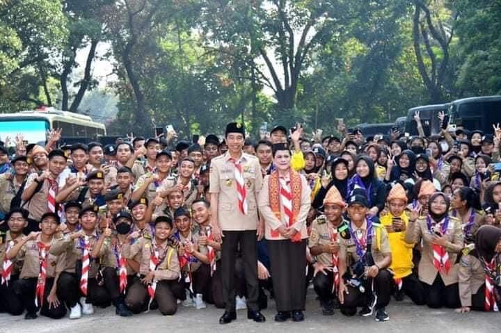 SULUHNEWS.ID, JAKARTA – Presiden Joko Widodo dan Ibu Iriana Joko Widodo meninjau langsung kegiatan Raimuna Nasional XII Gerakan Pramuka Tahun 2023 yang digelar di Bumi Perkemahan Pramuka Cibubur, Jakarta, pada Selasa, 15 Agustus 2023. Berseragam Pramuka lengkap, Presiden dan Ibu Iriana tiba di lokasi kegiatan sekitar pukul 07.26 WIB.