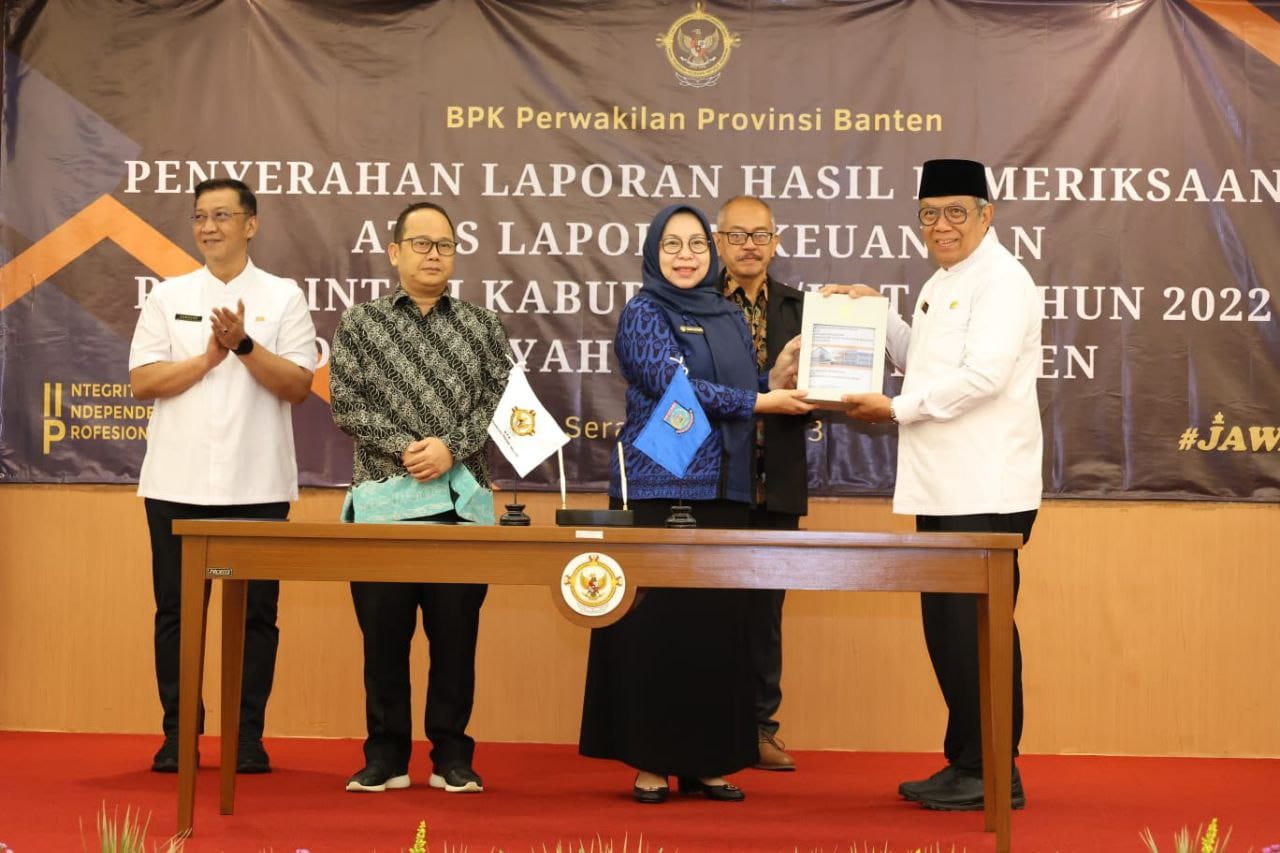 Penghargaan diserahkan langsung oleh Kepala Perwakilan BPK RI Provinsi Banten, Emmy Mutiarini di Kantor BPK RI Perwakilan Provinsi Banten, Serang, pada Jumat (12/05/2023).