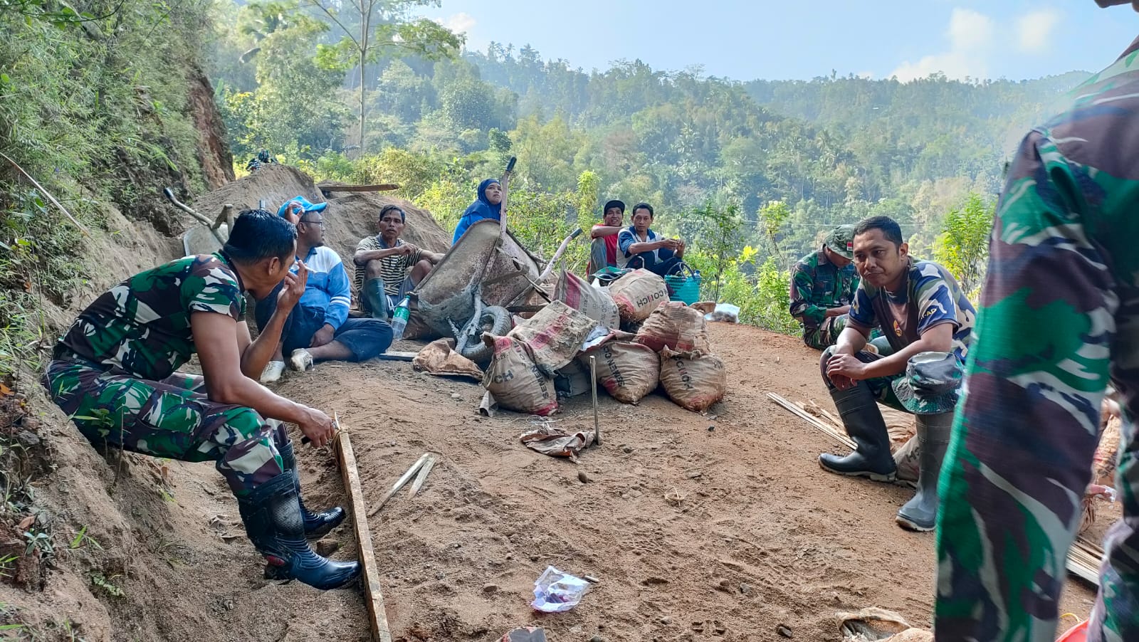 Momen keakraban dan kebersamaan TNI dengan masyarakat ini diabadikan oleh Suwarno (42) salah satu warga setempat yang ikut serta dalam program Pra TMMD tersebut.