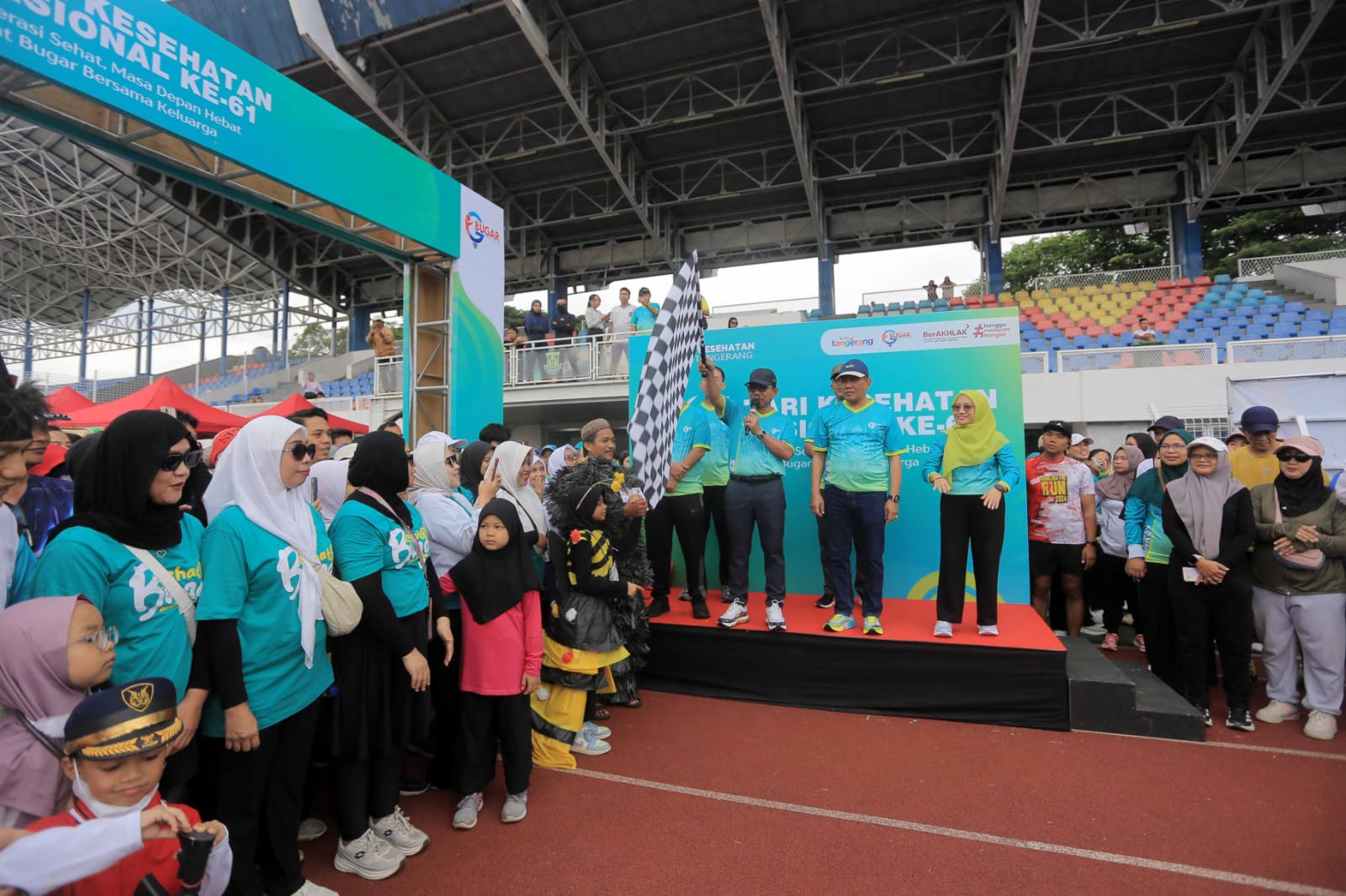 Acara berlangsung meriah dengan rangkaian kegiatan seperti senam bersama, gerak jalan sehat (fun walk), pembagian doorprize, serta pameran stan kesehatan dan UMKM.