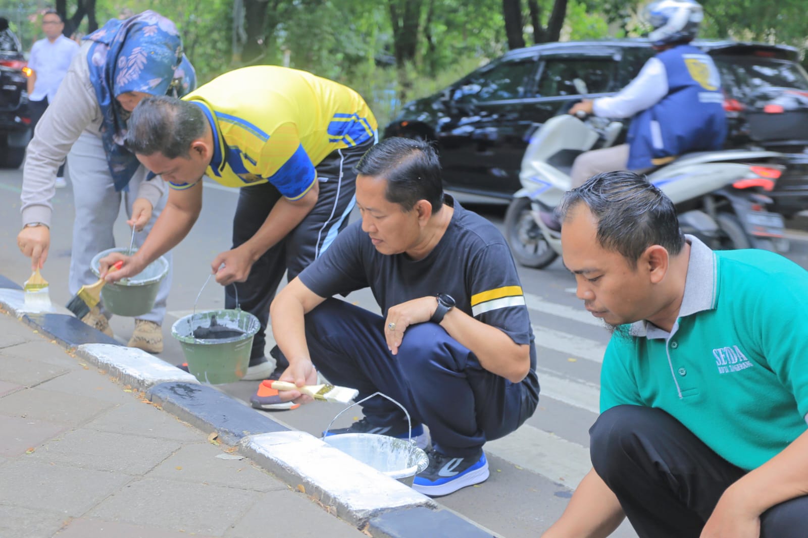 SULUHNEWS.ID, KOTA TANGERANG – Dalam rangka menyambut Hari Ulang Tahun (HUT) ke-31 Kota Tangerang, Pemerintah Kota (Pemkot) Tangerang menggelar kegiatan Jum’at Bersih dengan melakukan pengecatan kanstin bersama para pegawai Pemkot di sejumlah ruas jalan di Kota Tangerang yang diikuti oleh seluruh pegawai di Lingkungan Pemkot Tangerang.