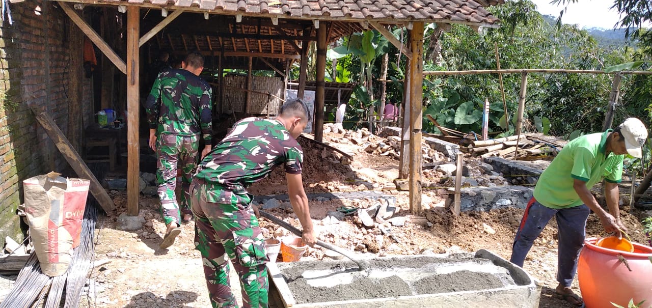 SULUHNEWS.ID, TRENGGALEK – Sasaran fisik program TNI Manunggal Membangun Desa (TMMD) ke-113 Kodim 0806/Trenggalek mulai menyasar ke rumah warga yang memerlukan bantuan tempat tinggal yang lebih layak huni di Desa Bogoran, Kecamatan Kampak, Trenggalek, Sabtu (14/05/2022).