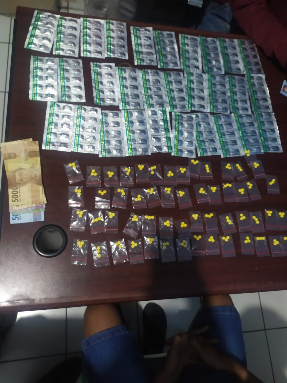 Barang bukti yang di amankan Tim Opsnal Satnarkoba Polres Cilegon berupa 30 lempeng pil tramadol yang per/lempengnya berisi 10 butir dengan jumlah keseluruhan 300 butir, 55 paket plastic bening yang per/paketnya berisi 3 butir dengan jumlah keseluruhan 165 butir Eximer, uang hasil penjualan Rp. 295.000, dan sebuah hp Vivo