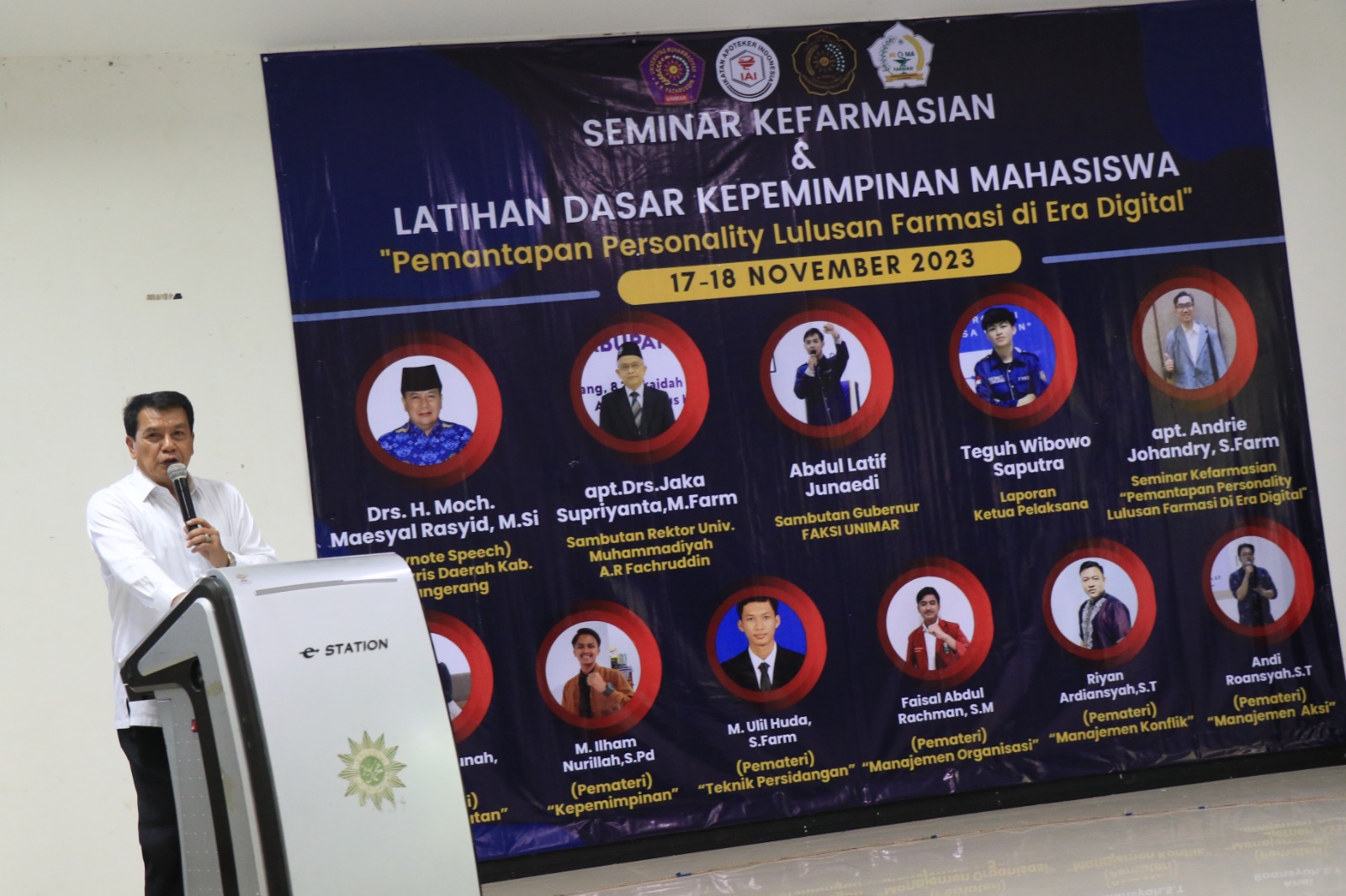 Hal tersebut dikatakan Sekda saat menjadi menjadi pembicara dalam seminar Kefarmasian dan Latihan Dasar Kepemimpinan Mahasiswa Universitas Muhamadiyah A.R Fachrudidin, Jalan Raya Pemda, Desa Matagara Kecamatan Tigaraksa. Jum’at, (17/11/23).