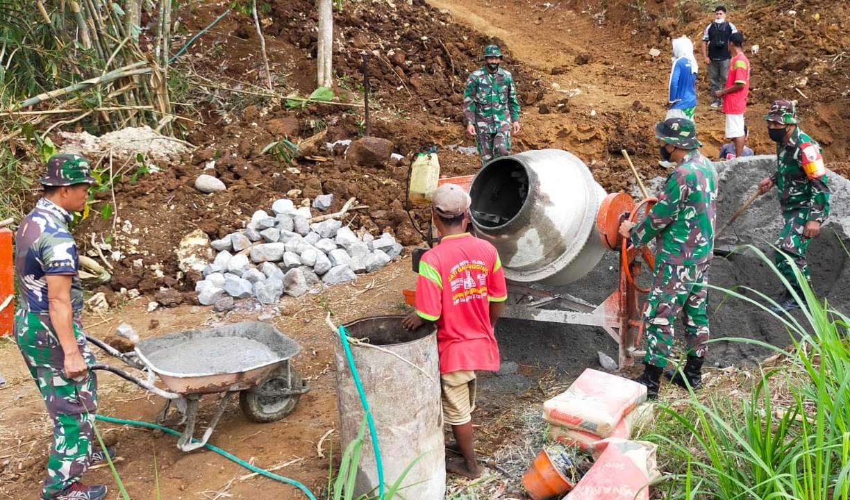 Selain pembuatan gorong-gorong, dalam gelaran TMMD ke-112 Blitar juga dilakukan pengerjaan berbagai sasaran fisik lainnya, mulai dari makadam jalan, pembangunan jembatan bentang, rehab teras masjid dan mushola, rehab Poskamling dan RTLH, serta pembuatan jambanisasi. (Ayu)