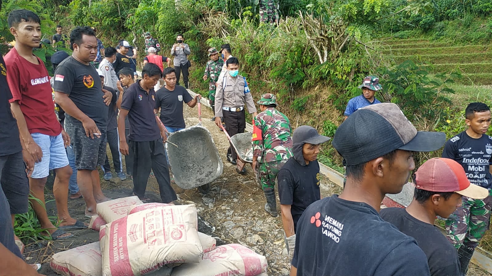 Dengan penuh kebersamaan dan kompak, anggota Satgas TMMD ke 113 Kodim 0802/Ponorogo bersama anggota Polsek Cepoko serta warga sekitar melaksanakan kegiatan pembangunan peningkatan jalan di Dukuh Slorok, Desa Cepoko.