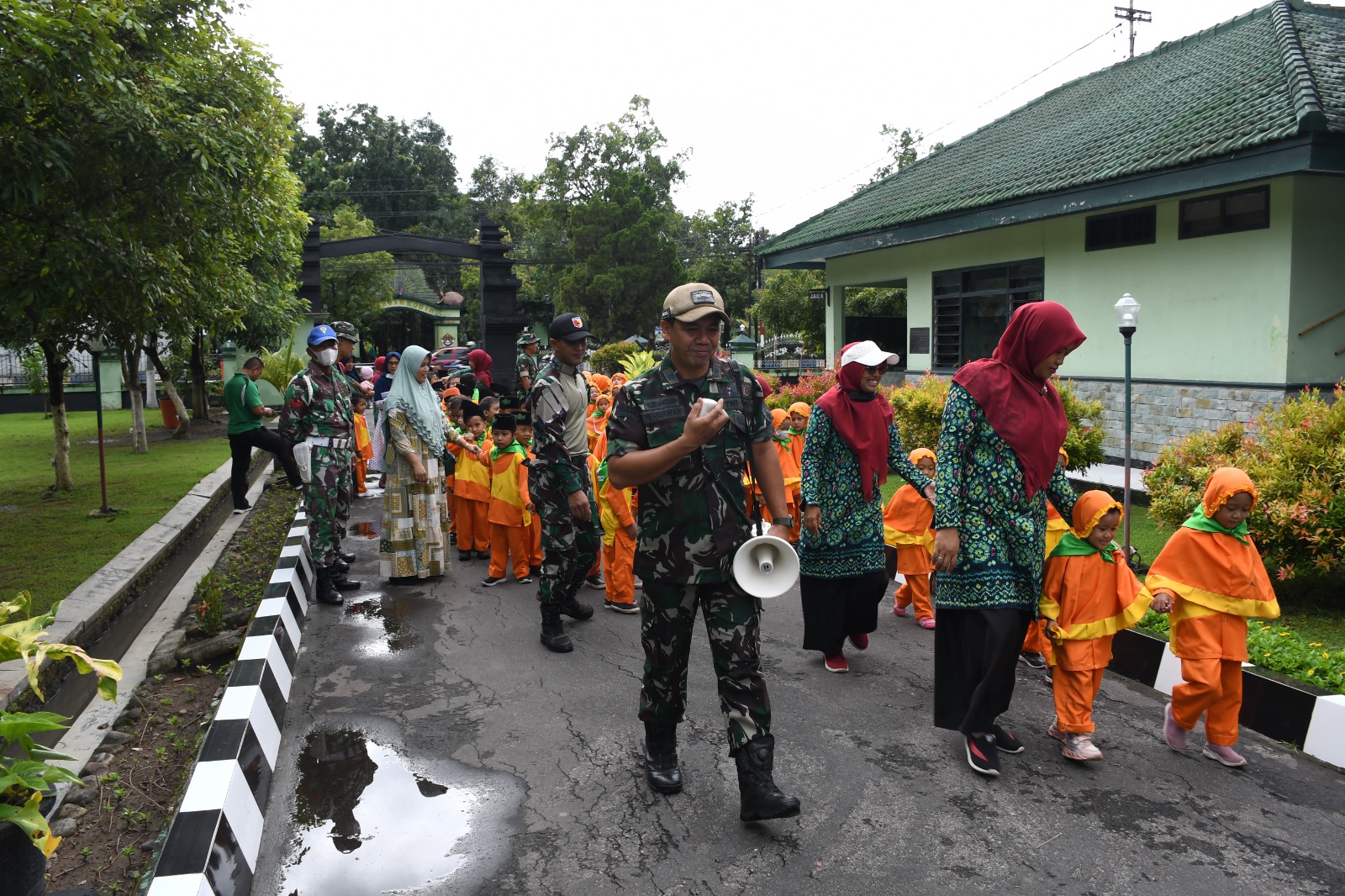 Seperti halnya kegiatan atau kunjungan dari anak – anak TK yang lainnya, tiba di Kodim 0802/Ponorogo para siswa – siswi PG-RA Muslimat Surodikraman diterima oleh para Pemandu kegiatan yang dipimpin oleh Batikomsos Sterdim 0802/Ponorogo, Peltu Hermawan. “ Dengan senang hati kami akan memandu dan mengarahkan adik adik dari PG-RA Muslimat Surodikraman, ” kata Peltu Hermawan.