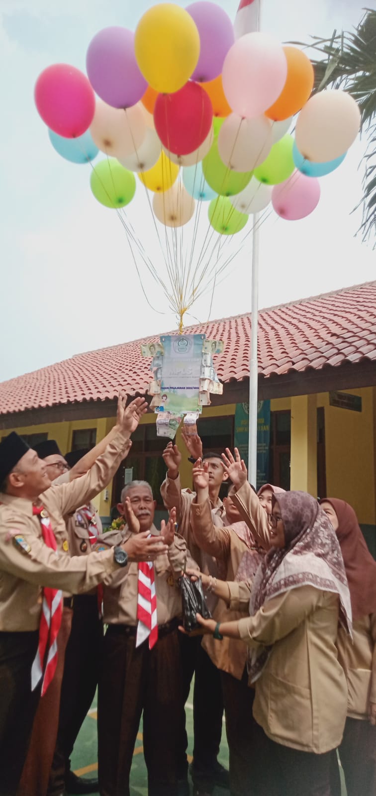 Dan disertai dengan pelepasan ratusan balon ke udara yang digantungkan beberapa lembar uang kertas rupiah sebagai simbol keberkahan dan kemakmuran SMP Kebudayaan.(Nisin)