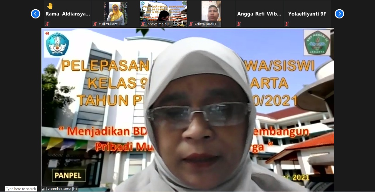 Acara pelepasan siswa secara virtual diikuti 33 tenaga pengajar, 12 orang tenaga kependidikan, perwakilan orang tua siswa berprestasi dan ketua komite secara bersamaan daring di rumah.Bagi siswa perwakilan dan para dengan guru yang hadir tetap menjalankan protokol kesehatan dan 3M.