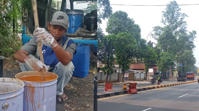Guna Mengurangi Resiko Kerusakan, DPUPR Lakukan Pengecetan Ulang Pembatas Jalan dengan Cat Minyak