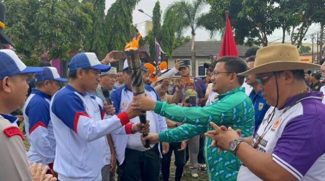Porkab Vl Kabupaten Tangerang, Camat Sepatan Timur Serahkan Kirab Api Obor Kepada Camat Sepatan