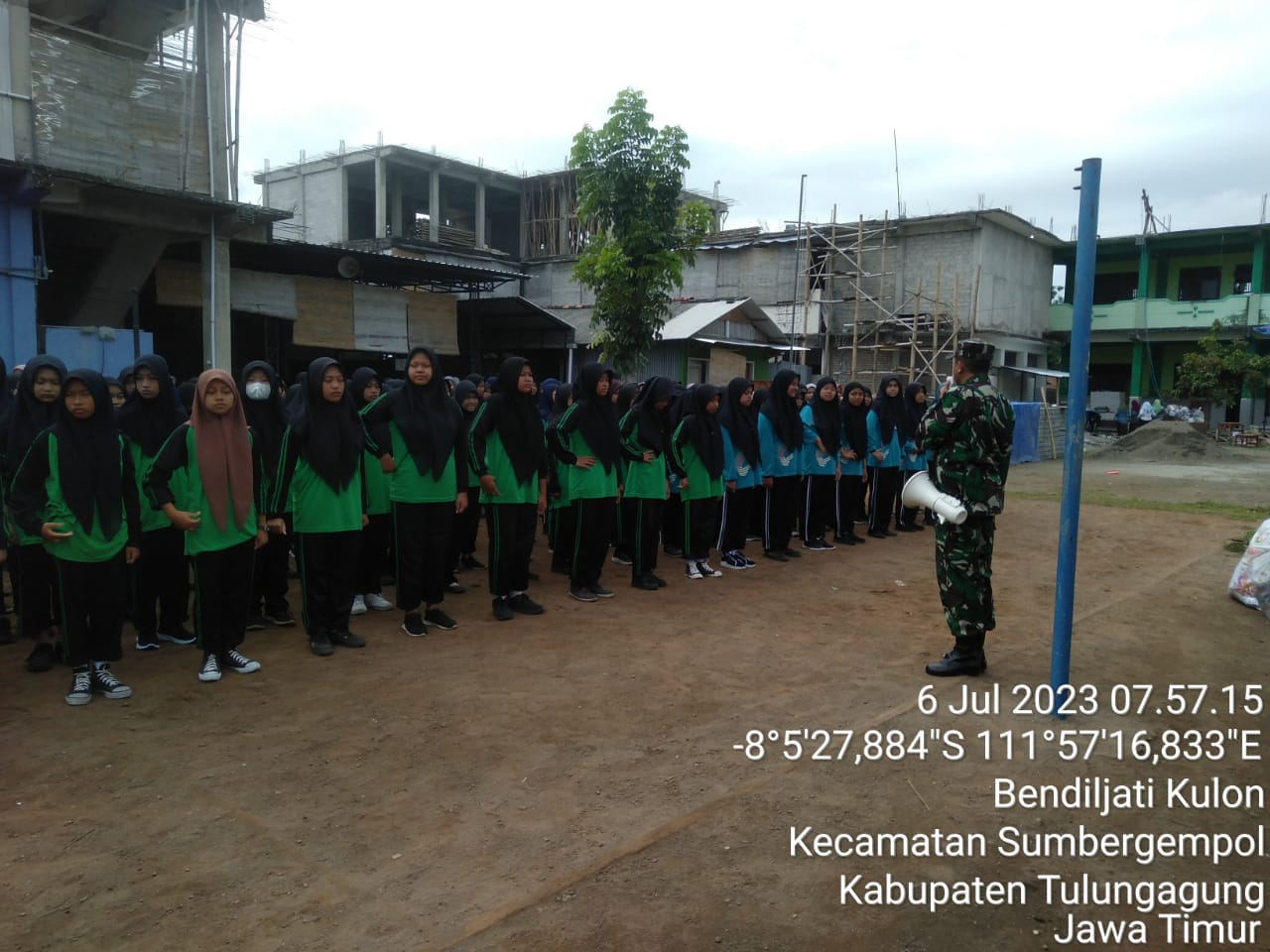 SULUHNEWS.ID, TULUNGAGUNG – Serma Basuki bersama anggota Koramil Tipe B 0807/07 Sumbergempol memberikan Pelatihan Baris Berbaris kepada siswa-siswi Madrasah Tsanawiyah (MTs) Darul Fallah Kecamatan Sumbergempol Kabupaten Tulungagung Jawa Timur, Kamis (06/07/2023).