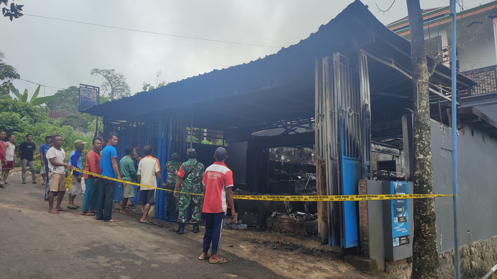 SULUHNEWS.ID, TRENGGALEK – Anggota personel Koramil 0806/11 Serka Suharjo bersama Sertu Edi Suryono dan instansi terkait mendatangi lokasi Tempat Kejadian Perkara (TKP) kebakaran sebuah toko milik warga RT. 23 RW. 07 Dusun Krajan, Desa Karangtengah, Kecamatan Panggul, Kabupaten Trenggalek, Selasa (09/05/2023).