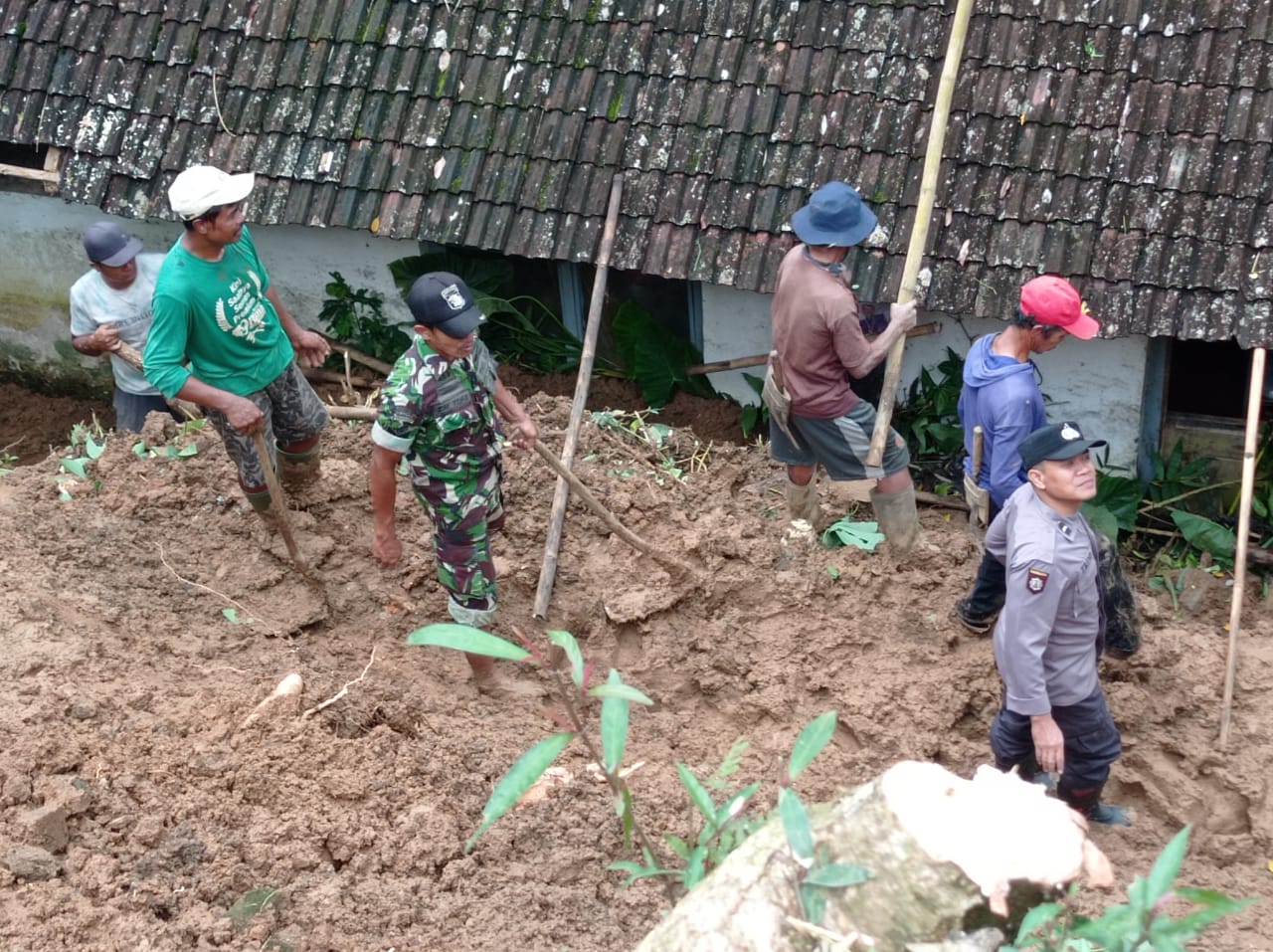 Menyikapi hal tersebut, kemudian Serka Widiyanto Babinsa Koramil 0801/05 Nawangan, Kodim 0801/Pacitan bergerak cepat melakukan pengecekan di lokasi kejadian, lalu berkoordinasi dengan Perangkat Desa serta mengajak masyarakat sekitar melakukan pembersihan material longsor secara gotong royong.