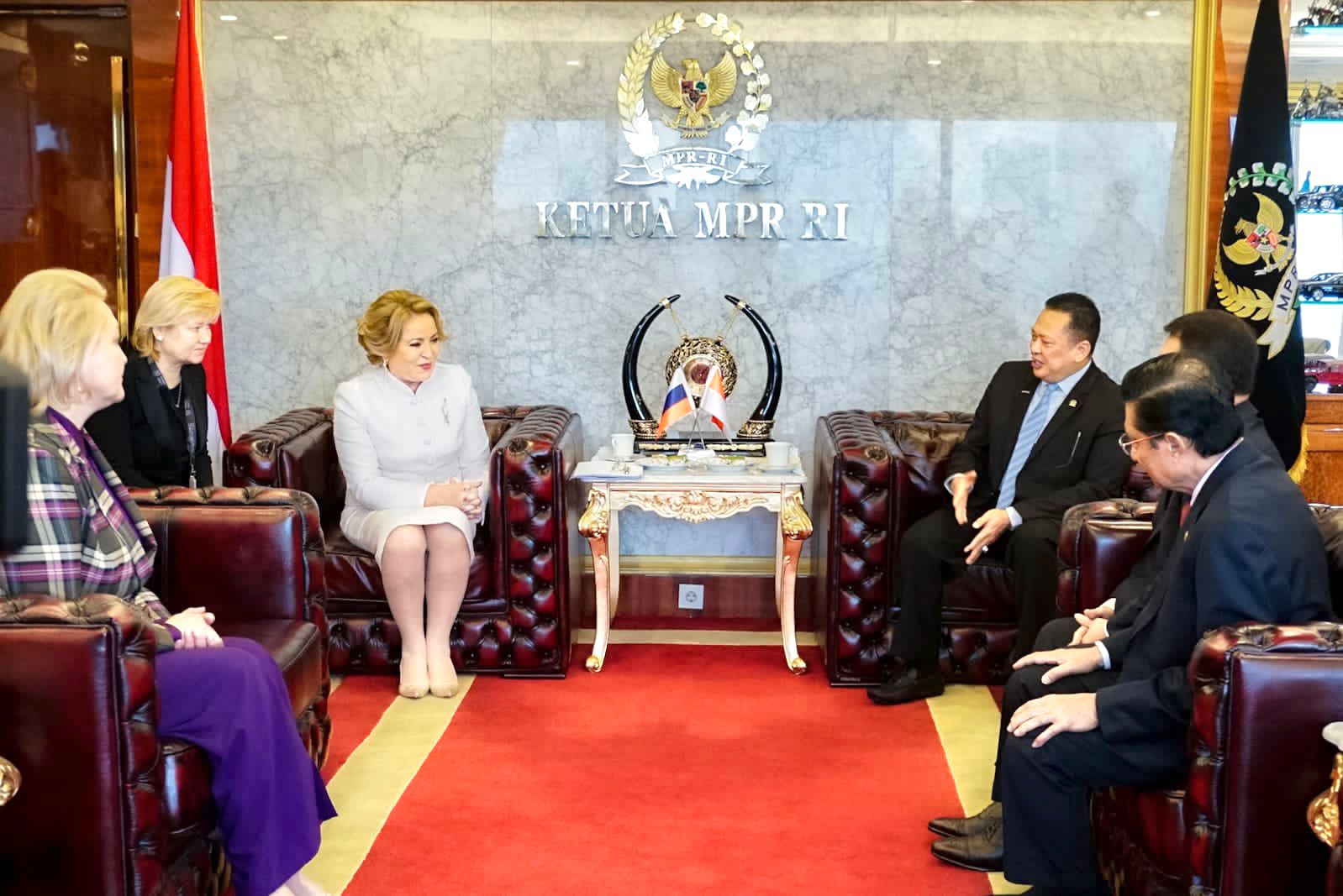 “Sebagaimana disampaikan Ketua Dewan Federasi Majelis Federal Federasi Rusia H.E. Mrs. Valentina Matvienko, posisi Indonesia bagi Rusia sangat penting. Indonesia dinilai sebagai mitra kunci bagi Rusia di kawasan Asia Pasifik. Rusia juga menjadi salah satu negara pertama yang mengakui kemerdekaan Indonesia. Sebagai sahabat, Indonesia berharap agar konflik militer Rusia – Ukraina bisa segera berakhir, dan dunia bisa kembali pulih,” ujar Bamsoet usai menerima Ketua Dewan Federasi Majelis Federal Federasi Rusia H.E. Mrs. Valentina Matvienko, di Ruang Kerja Ketua MPR RI, di Komplek MPR RI, Jakarta, Kamis (6/10/22).