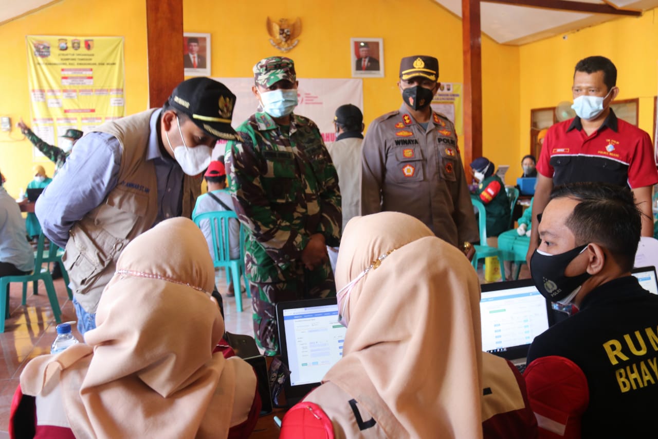 SULUHNEWS.ID, NGAWI – Komandan Kodim 0805/Ngawi Letkol Inf Totok Prio Kismanto,S.E., bersama pejabat Forum Komunikasi Pimpinan Daerah (Forkopimda) Kabupaten Ngawi meninjau pelaksanaan vaksinasi massal masyarakat Kabupaten Ngawi bertempat di Balai Desa Karangsono Kecamatan Kwadungan, Sabtu (26/06/2021).