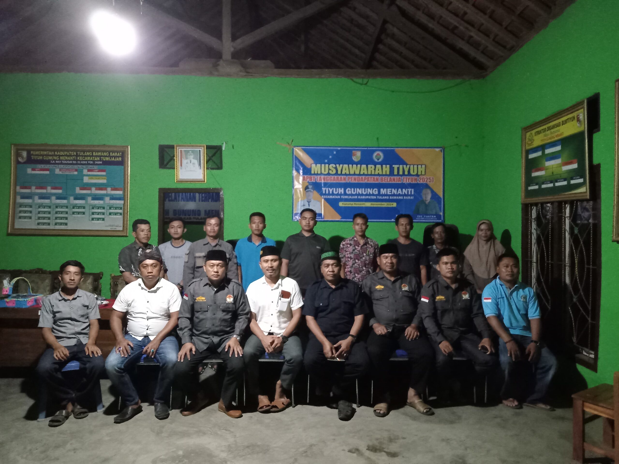 SULUHNEWS.ID, TUBABA — Pemerintah Tiyuh Gunung Menanti, Kecamatan Tumijajar, Kabupaten Tulang Bawang Barat (Tubaba), Provinsi Lampung, merealisasikan Program Dana Desa (DD) Tahun Anggaran 2025 dengan total anggaran sebesar Rp959.589.500.