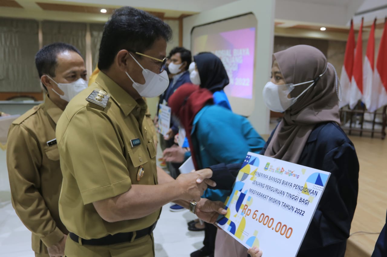 Bantuan Biaya Pendidikan Jenjang Perguruan tinggi tersebut diserahkan secara simbolis oleh Wakil Wali Kota Tangerang, H. Sachrudin, kepada 13 mahasiswa perwakilan dari tiap Kecamatan di Kota Tangerang.