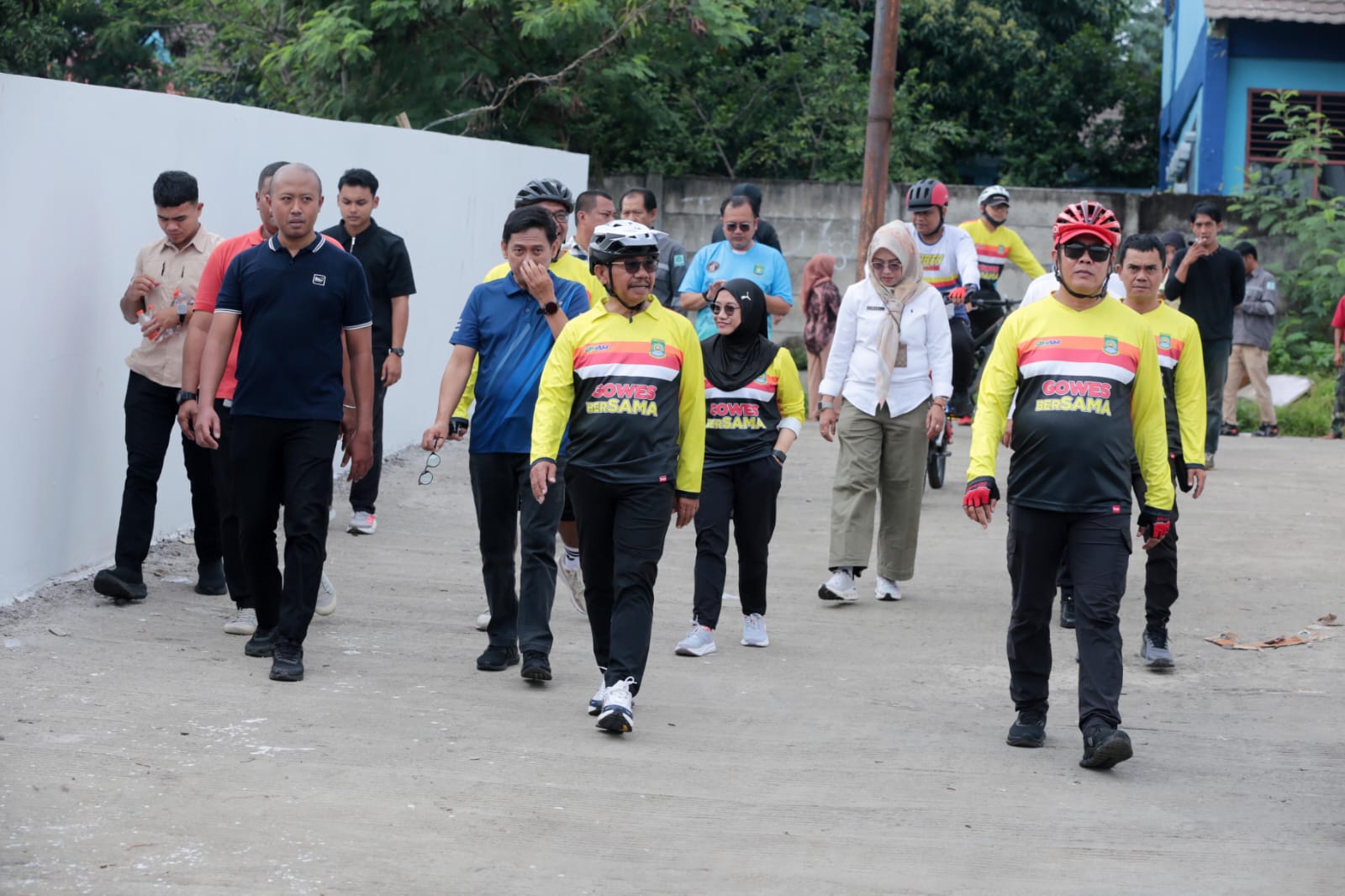Seusai meninjau RSUD, gowes diakhiri di Kantor Kelurahan Nusa Jaya. Wali Kota menyapa para pegawai yang sedang melaksanakan Gerakan Jumat Bersih sekaligus meninjau kantor Koperasi Merah Putih yang telah beroperasi di sana. (Martinus)