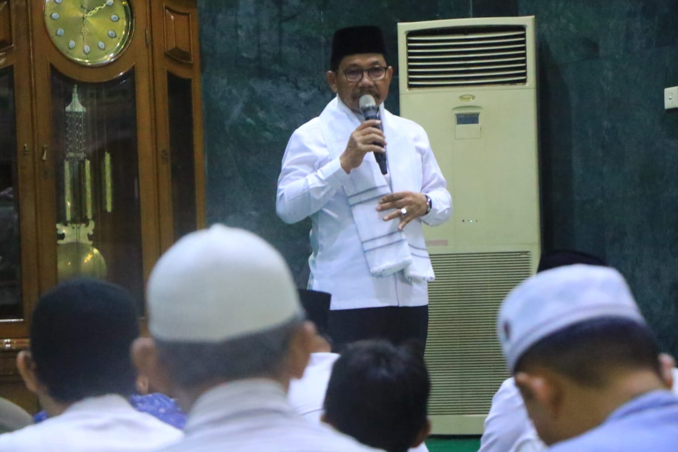 “Bulan yang kita nanti-nantikan akhirnya tiba. Bulan penuh keberkahan dan kemuliaan, yang tentunya harus kita sambut dengan penuh suka cita dan kebaikan,” tutur wali kota, dalam kultumnya usai salat Isya menjelang tarawih.