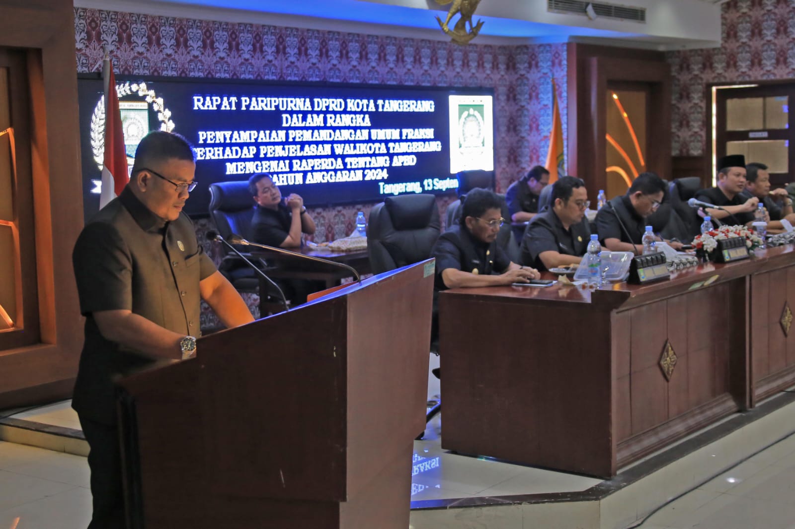 SULUHNEWS.ID, KOTA TANGERANG – Wali Kota Tangerang, Arief R. Wiswmansyah, didampingi wakilnya, H. Sachrudin, menghadiri Rapat Paripurna DPRD dengan agenda Penyampaian Jawaban Wali Kota terhadap Pemandangan Umum Fraksi-Fraksi Dewan Perwakilan Rakyat Daerah (DPRD) Kota Tangerang Mengenai Rancangan Peraturan Daerah (Raperda) Tentang APBD Tahun Anggaran (T.A) 2024, yang digelar di Ruang Rapat Paripurna DPRD Kota Tangerang, Rabu, (13/09).