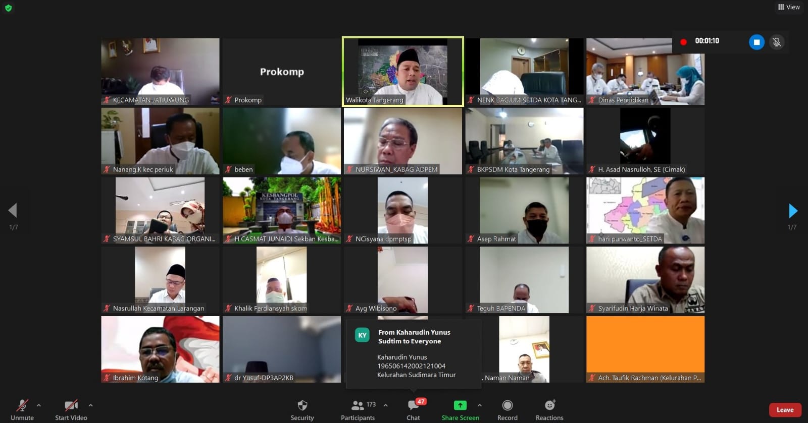 SULUHNEWS.ID, KOTA TANGERANG-Antisipasi penyebaran Covid-19 di Kota Tangerang, Pemerintah Kota Tangerang menggelar Rapat Koordinasi secara daring dengan membahas terkait langkah penanganan Covid-19 bersama seluruh Organisasi Perangkat Daerah (OPD) serta Camat dan Lurah se-Kota Tangerang, Jum’at (7/1/22).
