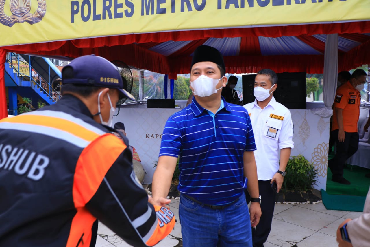 Usai mengecek Masjid Raya Al Azhom, Wali Kota meninjau Posko mudik yang berada di Wilayah Kecamatan Tangerang tepatnya di Jalan Daan Mogot Kota Tangerang.