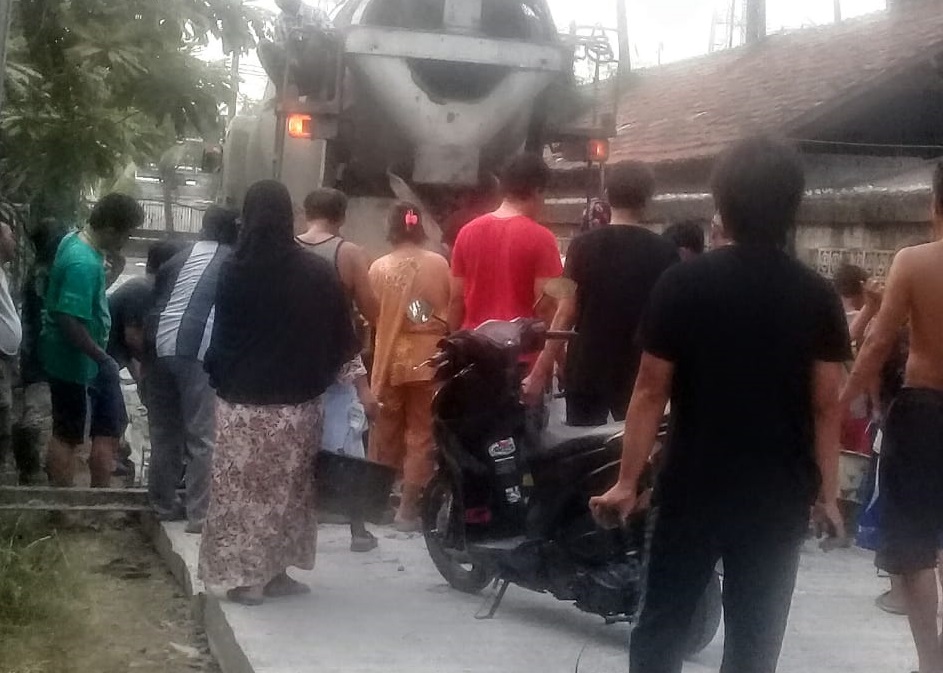Warga sekitar, laki laki perempuan, dari yang tua hingga yang muda bahkan anak anak, terlihat antusias berjibaku memasang upritan yang menghubungkan dari jalan coran utama ke sambungan jalan arah kiri dan kanan, sebagai bantuan atau dukungan terhadap pekerja, agar jalan cepat selesai dan segera bisa digunakan.