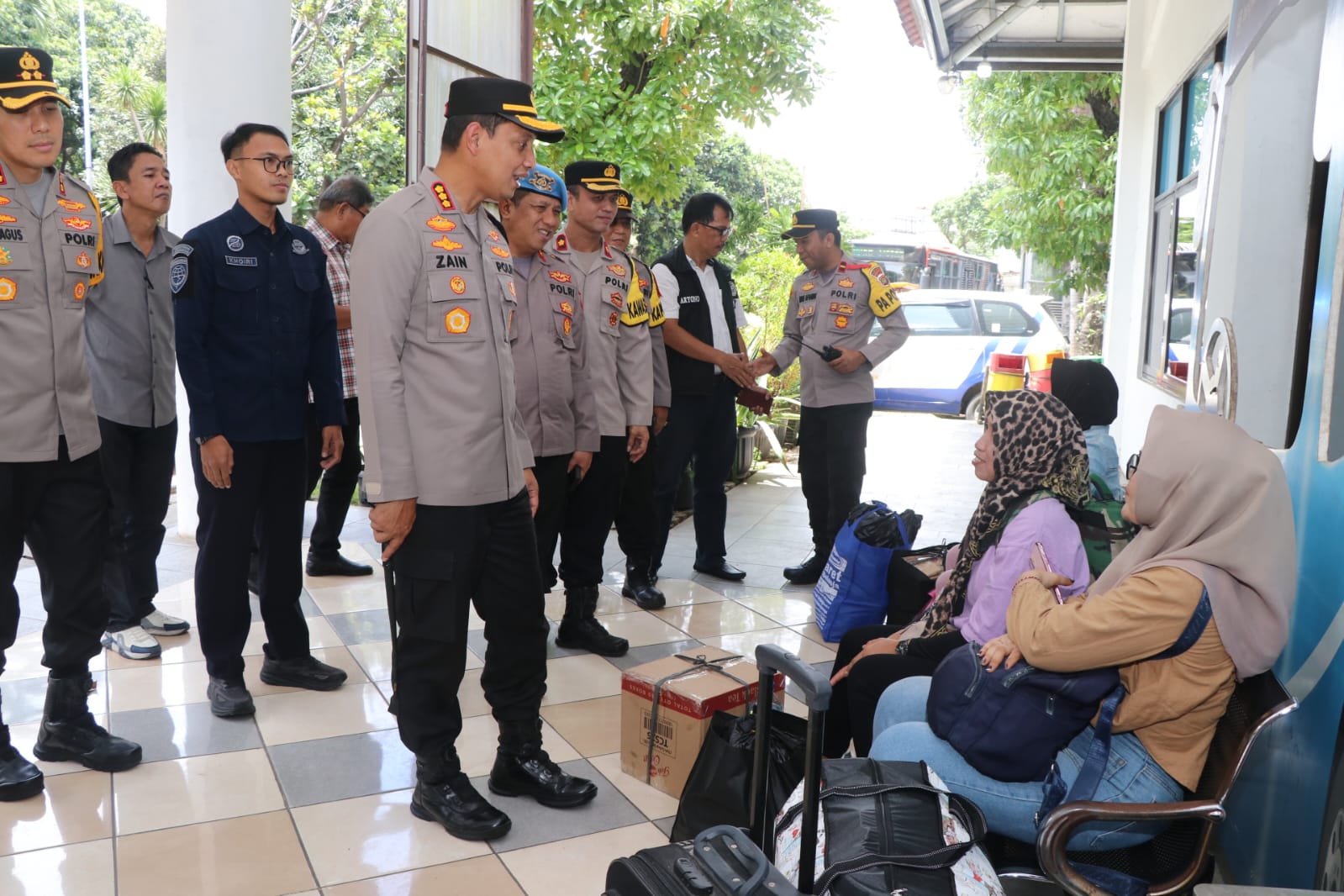 SULUHNEWS.ID, KOTA TANGERANG – Mudik Aman Keluarga Nyaman, Kapolres Metro Tangerang Kota, Kombes Pol Zain Dwi Nugroho menyapa sejumlah pemudik yang mulai memadati Terminal Poris Plawad di hari pertama mulainya operasi Ketupat Jaya 2025.