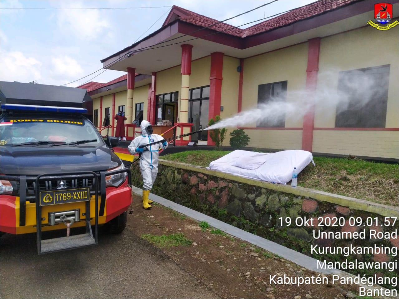 “Guna memerangi serta memutus mata rantai penyebaran virus Covid-19 di Banten, Personel KBR (Kimia Biologi Radioaktif) Sat Brimob Polda Banten terus melakukan sterilisasi melalui penyemprotan disinfektan di sejumlah lokasi di wilayah hukum Polda Banten ,” kata Fiandar kepada awak media, Senin (19/10/2020).