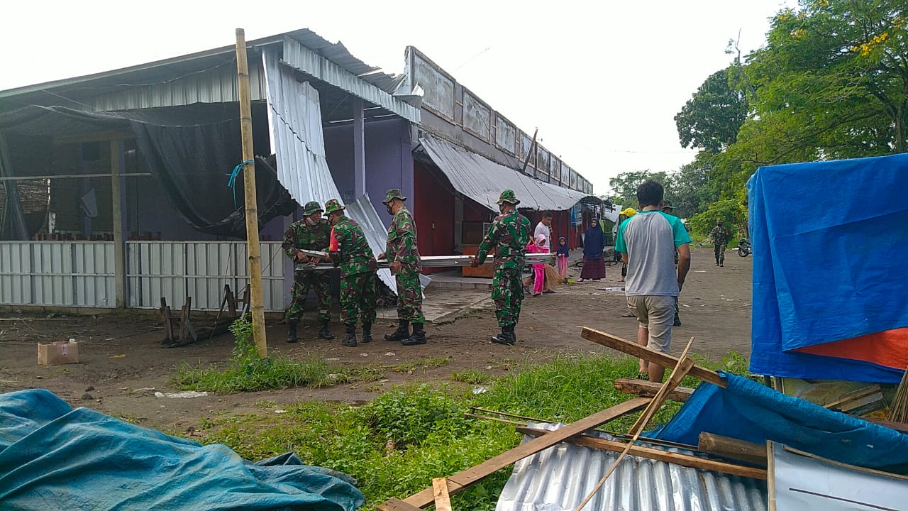 “Pembersihan pasca bencana hujan deras disertai angin kencang kali ini kami lakukan bersama sama untuk menjaga kebersihan lingkungan supaya kembali bersih dan nyaman” ucap Babinsa.