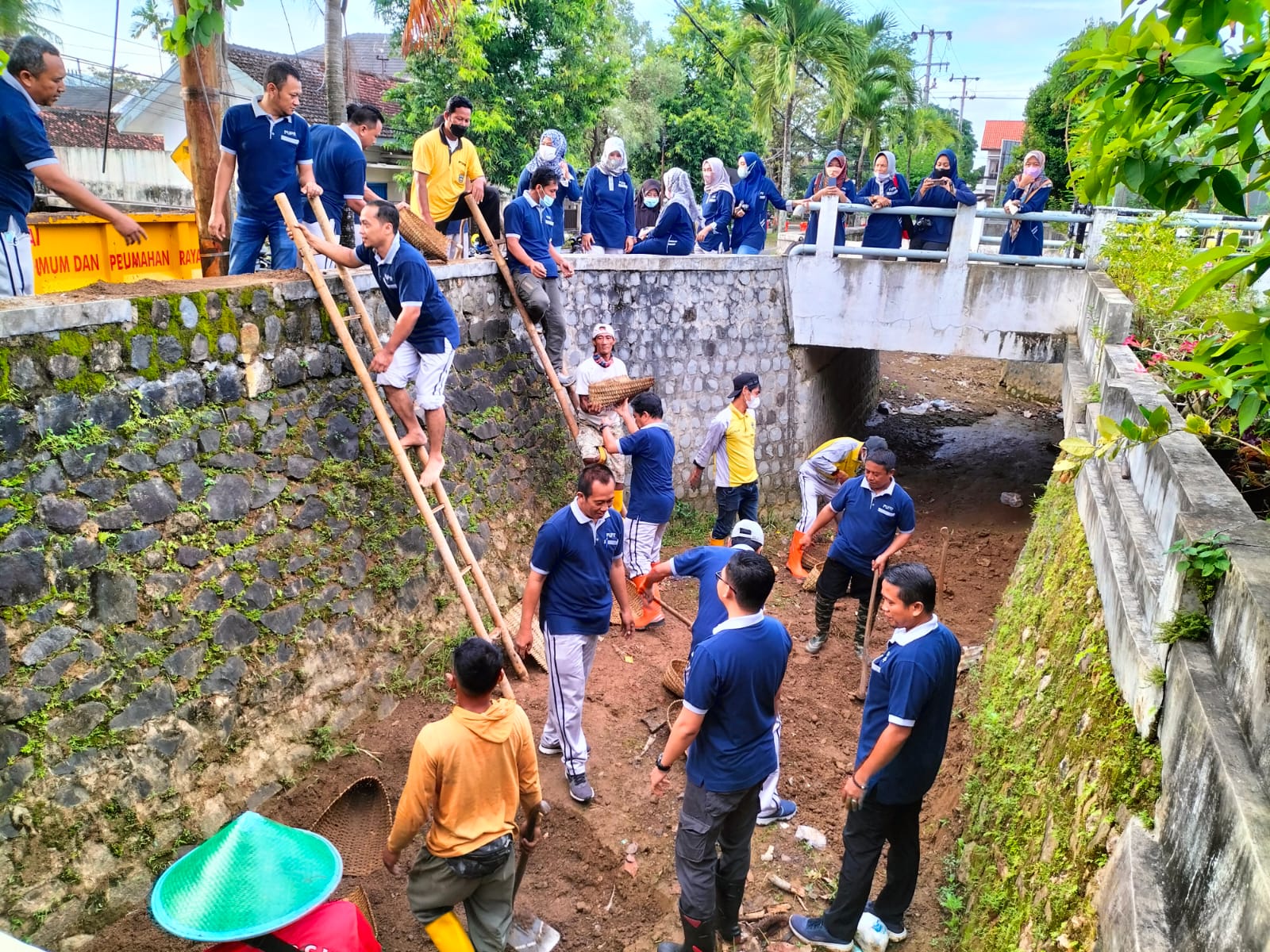 Mereka serentak bekerjasama mengurangi sedimentasi di sungai sepanjang Jl. S. Parman, Kelurahan Pucangsewu, Pacitan. Pasalnya jika hujan dengan intensitas sedang mengguyur wilayah kota sehari saja, hampir dapat dipastikan sungai itu meluapkan air ke jalan S. Parman dan sekitarnya.