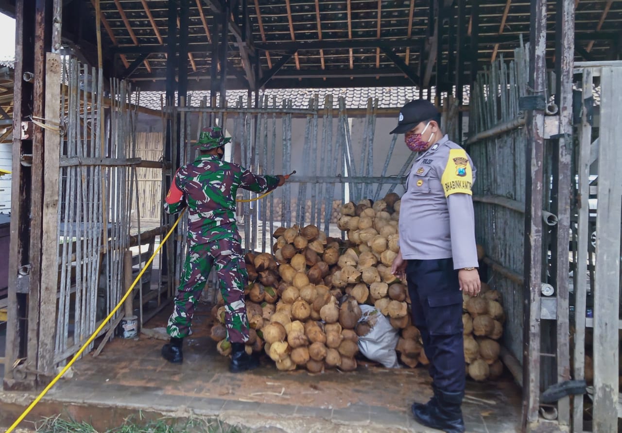 Bersama Tim Relawan Kelurahan Desa Ngadirojo Babinsa Serka Anang melakukan penyemprotan di wilayah Desa Ngadirojo dengan sasaran pasar tradisional dan rumah warga juga ke sejumlah tempat-tempat umum lainya.