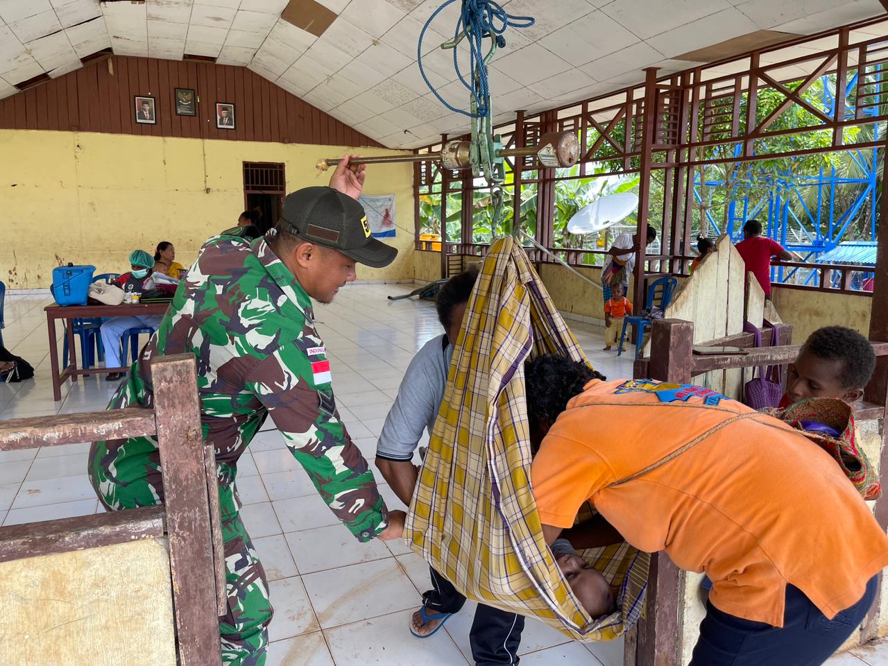 SULUHNEWS.ID, MERAUKE – Erambo, Wujudkan Indonesia Sehat, Satgas Pamtas RI-PNG Yonif 511/DY yang beradah di bawah komando pelaksana operasi (Kolakops) Korem 174/ATW Pos Kaliwanggo memberikan Tenaga bantuan kepada para bidan di kampung Erambo